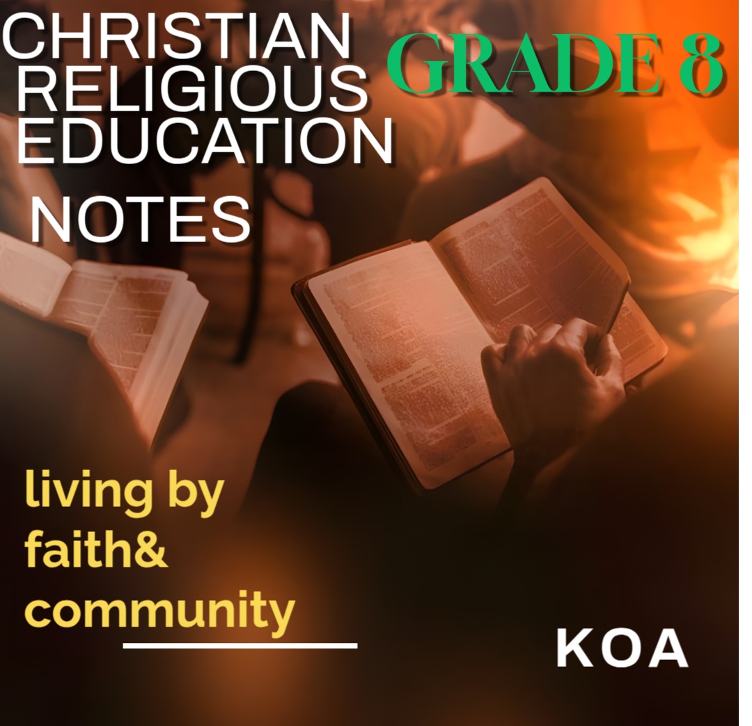 The CBC CHRISTIAN RELIGIOUS EDUCATION grade 8 notes are designed to guide learners in understanding and applying Christian teachings in their daily lives while strengthening their faith and moral foundation. Based on the Competency-Based Curriculum (CBE Kenya), these notes provide comprehensive coverage of all concepts learners are expected to master, making them an excellent companion for both classroom and home study. The content helps students build character, develop respect for others, and make decisions guided by Christian values. These grade 8 notes focus on nurturing the learner’s spiritual, emotional, and social growth. They emphasize virtues such as honesty, patience, humility, forgiveness, and service to others qualities that are essential for responsible Christian living. The notes encourage students to reflect on their actions, appreciate the importance of faith, and apply biblical principles in handling real-life challenges. Lessons are enriched with Kenyan examples, stories, and illustrations that make learning more practical and relevant to learners’ everyday experiences.The CBC CHRISTIAN RELIGIOUS EDUCATION grade 8 pdf provides clear explanations, well-structured lessons, and self-assessment questions that allow learners to review their progress. Teachers and parents will also find the CBC CHRISTIAN RELIGIOUS EDUCATION grade 8 notes helpful for guiding learners through discussions, moral reflections, and character-building activities. By studying these notes, learners become more confident in expressing their beliefs and demonstrating Christian values in school, at home, and in their communities.Ultimately, these notes are more than academic resources they are tools for transformation. They help learners strengthen their relationship with God, understand the teachings of Jesus Christ, and live out their faith through kindness, compassion, and service. With these well-structured and learner-friendly notes, Grade 8 students are inspired to grow spiritually, think morally, and act responsibly, preparing them to be role models and leaders who live according to Christian principles.